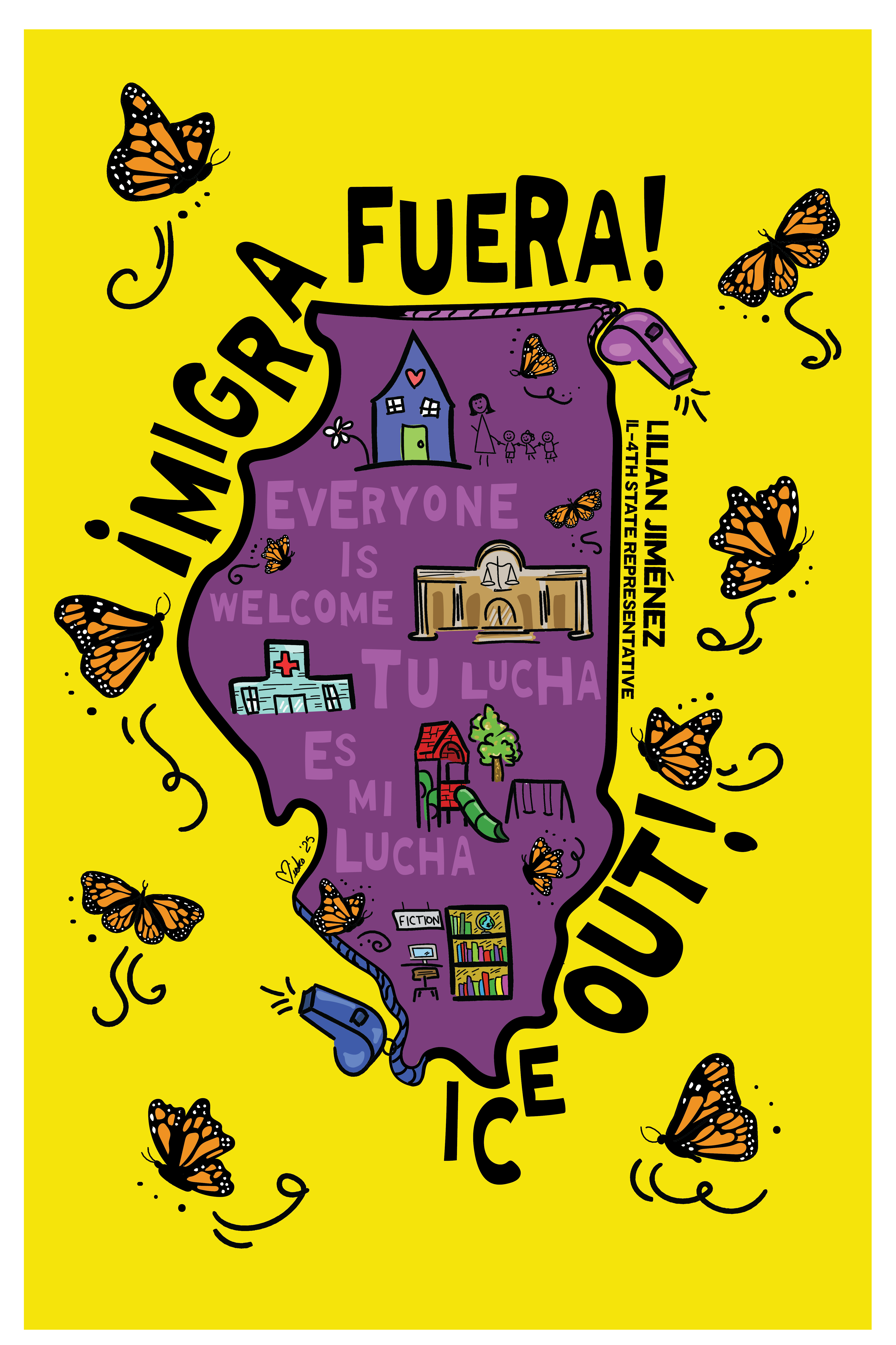 In 2025, Rep. Jiménez served as Chief Sponsor of the Safe Schools Act (HB 3247), protecting children from immigration enforcement in K–12 schools. She also sponsored HB 1312, making Illinois the first state in the nation to allow residents to sue federal agents who violate constitutional rights and to prohibit immigration enforcement at courthouses, daycare centers, public universities, and hospitals. Additionally, she is a co-sponsor of the Human Rights Advocacy Protection Act (HB 2723), protecting the right of Illinois residents to engage in boycott, divestment, and sanctions campaigns in support of human rights in Gaza.